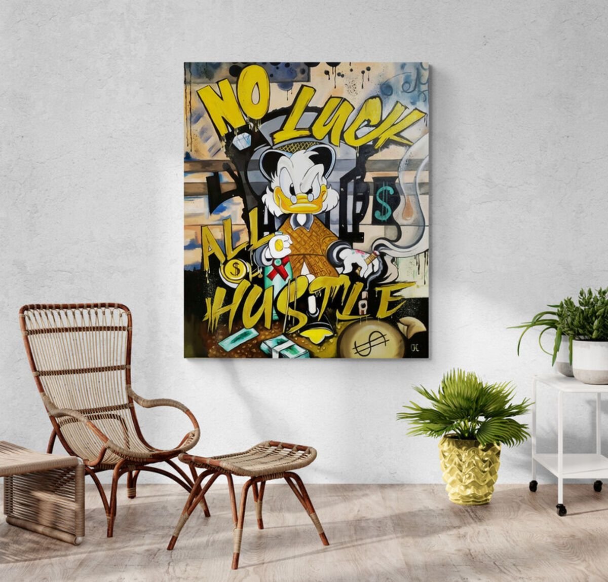 Our paintings come with pre-installed hanging hardware and will never damage your walls. They are assembled and ready to hang right out of the box.